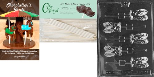 Cybrtrayd 'Ears Lolly' Easter Chocolate Candy Mold with 25 4.5-Inch Lollipop Sticks and Chocolatier's Guide
