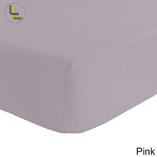 -. Title : 1- Piece - Fitted Sheet Striped 14 inches Deep Pocket 100% Egyptian Cotton 650 Thread Count Size Queen Color Pink .