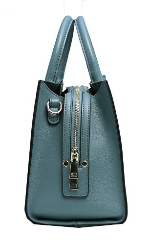 Material: Cowhide & Manmade Leather. Smooth zippered closure. High quality light gold Hardware. Interior polyester lining.