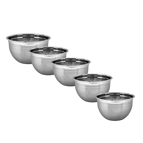 Kosma Set of 5 Stainless Steel Deep Mixing Bowl | Salad Bowl (Hammered Finish) - 14cm, 18cm, 22cm, 26cm, 30cm (0.75 Qts, 1.5 Qts, 3 Qts, 5 Qts, 8 Qts)