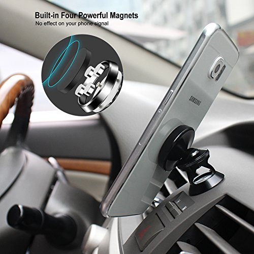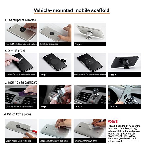 5. MAGNET - The powerful car magnet and the round metal plate with this mobile holder perfectly support your device in place. Stick the mount metal plate out of phone case or on the back of phone. The round car magnet disk of this cell phone desk holder won't interfere with motion sense, gps, signal or internal sensors. It does not harm your devices or affect the battery.