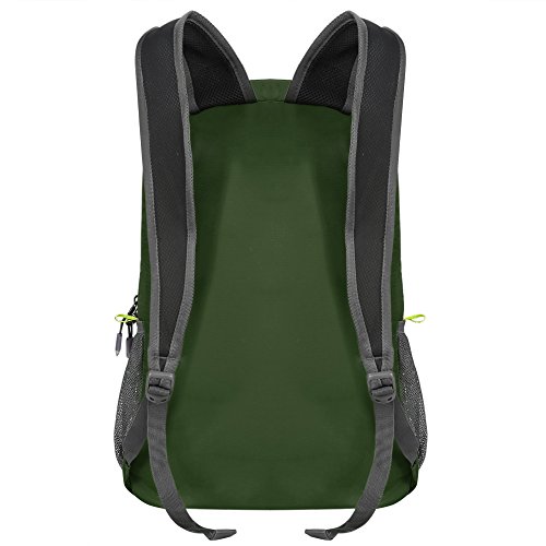 -. Feature : ?DURABLE - The backpack is made from highly rip and water resistant nylon fabric, provide strengthen and long-lasting performance with minimal weight. Duarable abrasion resistant SBS metal zipper avaliable. Reinforced more than 12 places with bartack process. This bag will last for many years. / ?LIGHTWEIGHT (8 oz.) AND COMFORTABLE - Perfect for day trips, vacation, travel, day hikes, school, camping and shopping. 19*12*8 Inch. Experience makes the most comfortable wide breathable mesh shoulder straps. Easy to adjust the length and lock firmly. High quality SBS two-way zipper goes smoothly. / ?SMALL TILL YOU OPEN IT - The backpack is roomy (25 Liter), and easy to folds up into small pocket (Sandwich size). You would Love that you can throw it in your suitcase, purse or car and have an extra bag without it taking up space. The Secret of Never Paying Overweight Baggage Fee! / ?MULTI COMPARTMENTS - Four zippered compartments. Main pocket is Large enough to carry what you need. Outer bigger pocket great for Ipad or Magazine. Outer smaller pocket great for quick access such as guide books and camera. Inner zippered pocket which doubles as the storage pouch is perfect place for valuables such as cash, credit cards and passport. Two large side mesh pockets for water bottles or umbrella. / ?PERFECT COMPANION FOR TRIPS - Ultra-light. Ultra-durable. Ultra-awesome. A true space saver. Stuff the bag into its own pocket for storage---no extra fees, and unzip it when you reach your destination. Avoid overweight charges, simply unfold from your lage and use it as a carry on for your excess baggage. The backpack is perfect for day-to-day use or occasional travel, and great gift for everyone.