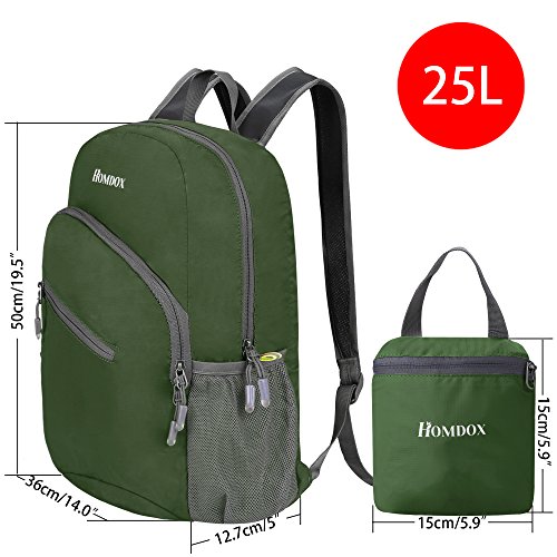 -. Title : Homdox 25L Lightweight Hiking Daypack Handy Packable Travel Backpack - Foldable Durable & Waterproof