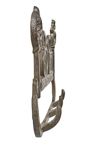 - Made of cast iron, forged for lifetime use. Antique Rust Brown Color. Size around 6 x 7 ½ inches. Includes screws and anchors