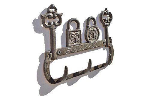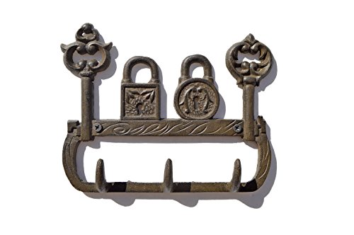 Gasare, Key Holders for Wall, Key Rack, Cast Iron Decorative Hooks, Antique Design, 3 Hooks, Size around 6 x 7 ½ inches, Made of Rustic Cast Iron, Antique Rust Brown Color, Include Screws and Anchors