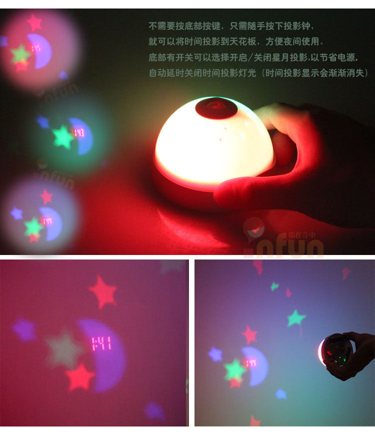 [Features]: bottom with three projectors button, just one night only by hand can be time clearly projected onto the ceiling roof Oh. Very convenient!