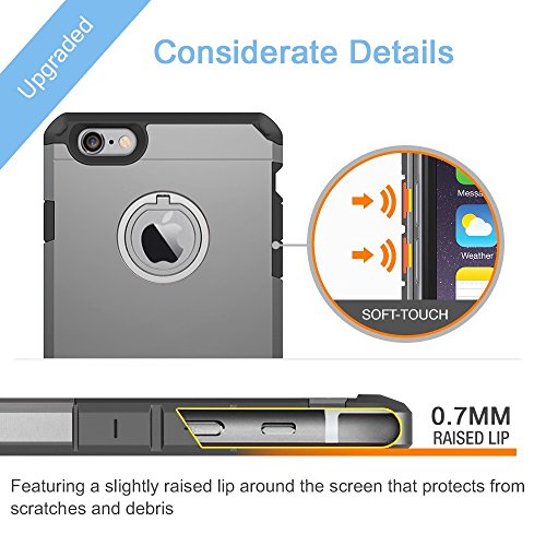 -. Feature : Exclusive custom-level Exterior: Simple remarkable aesthetic exterior design made from premium anti-stretch TPU + durable Germany Bayer polycarbonate, exclusive appearance patent product / New Experience:360 degree-rotating zinc alloy finger ring kickstand provides you with multiple viewing angles for watching video and pictures. / Presidential-level Protection: Flexible soft TPU shock-absorbing inner frame with Soft Corner Cushion + anti-scratch PC Cover provides a robust double line protection of defense against drops / Considerate Details: A 0.7mm raised lip to protect screen from scratches and debris on flat surfaces / Exquisitely designed engineered for iPhone 7 (4.7") 2016
