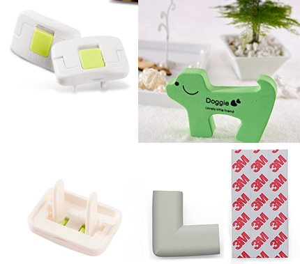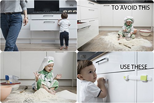 - 1.👪ENTIRE HOME PROTECTION. These baby proofing safety adjustable locks will help you keep cabinets, kitchen appliances securely locked and the corner protectors, plug covers and door stopper help you make sure that the kitchen tables and electric outlets are completely safe for your child to play near.