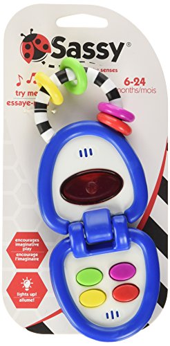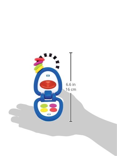 Encourage interactive play and help develop communication with this fun phone. The four colorful buttons "talk" to baby encouraging language development, while the "screen" lights up, capturing baby's attention and helping to promote concentration. The phone opens and closes, helping to develop baby's pincer grip, a necessary skill for independence. The high contrast colors on the handle allow baby to focus, strengthening vision.Feature