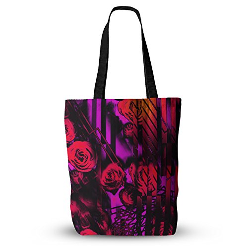 KESS InHouse Dawid Roc "Red Roses-Flower Geometric" Pink Black Everything Tote Bag, 18" x 18", Multicolor