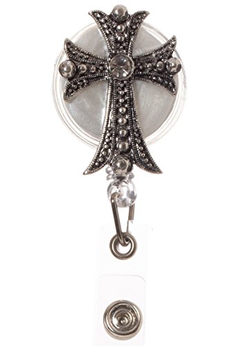 Artisan Owl - Gemmed Christian Cross Retractable ID Badge Reel with Clip