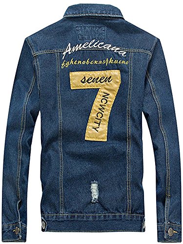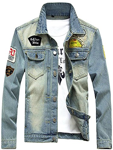 -. Title : WELITY Men's Fashion Patches Red Denim Jeans Bomber Jacket Coat
