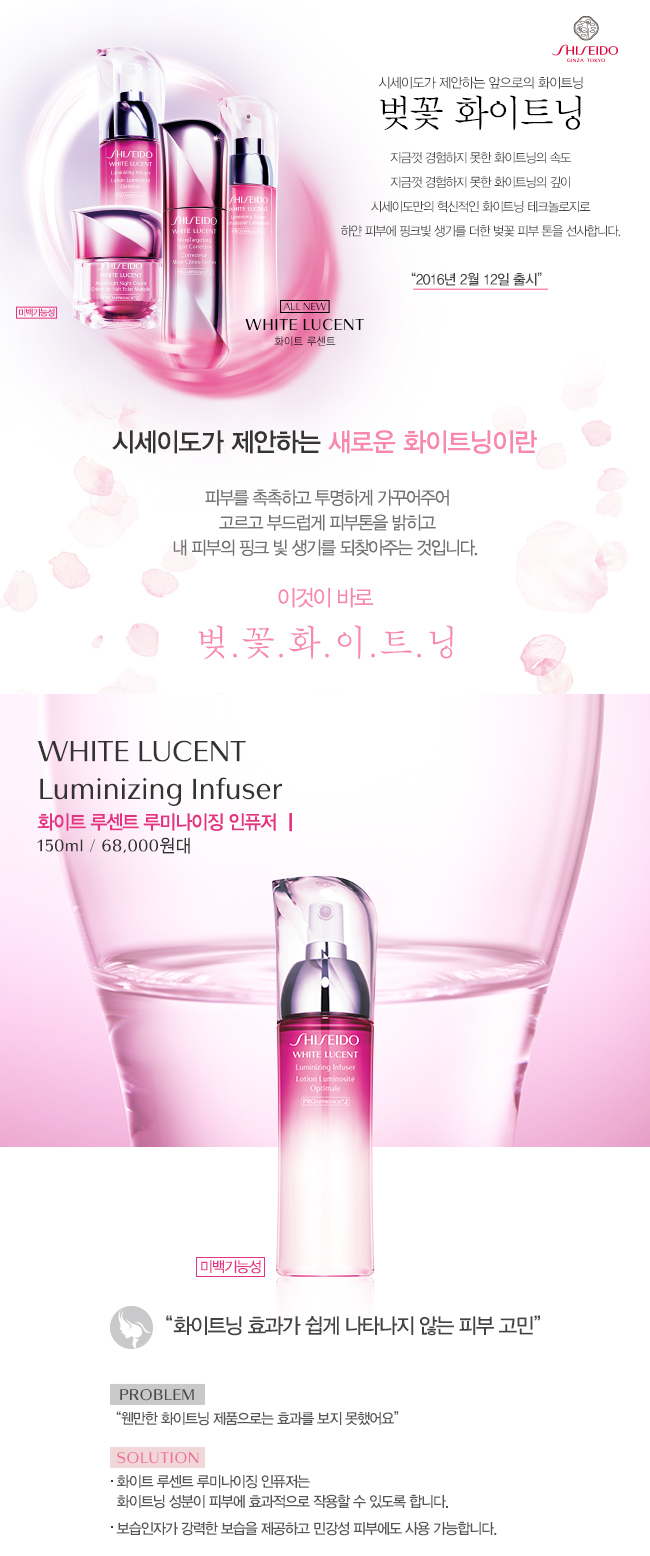 | (11월) 화이트 루센트 인퓨저 세트 [정품] - 시세이도 화이트 루센트 루미나이징 인퓨저 150ml [증정품] - 화이트 루센트 소프너 75ml - 화이트 루센트 서지 30ml - 화이트 루센트 나이트 크림 10ml - 바이탈 퍼펙션 클렌징 폼 7ml |