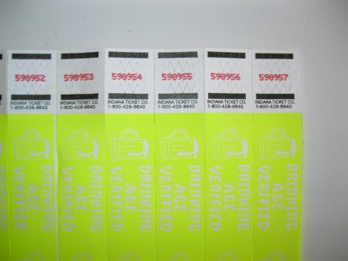 -. Binding : Office Product -. Brand : School House Cards -. Feature : 100 Consecutively Numbered Tyvek Wristbands 3/4 inch / Waterproof,durable,great one time use / Made of Dupont-Tyvek materials -. Label : School House Cards -. Manufacturer : School House Cards -. MPN : NYDAV100WB -. PackageQuantity : 1 -. PartNumber : NYDAV100WB -. ProductGroup : Office Product -. ProductTypeName : OFFICE_PRODUCTS -. Publisher : School House Cards -. Studio : School House Cards -. Title : 100 Drinking Age Verified Neon Yellow Consecutively Numbered Tyvek Wristbands