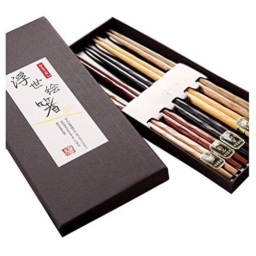 -. Title : Natural Wood Chopsticks Gift Set, Art Design, Pack of 5