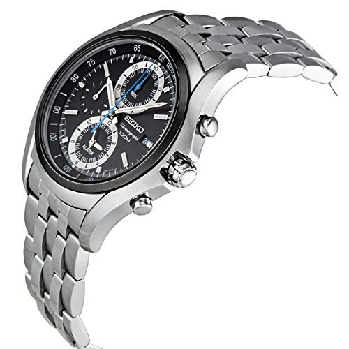 세이코import Mens Watch Seiko 세이코 SNAE83 스테인레스 스틸 Alarm 크로노그래프 Black Dial Link Brace 남성용 맨즈 손목시계 (병행수입)