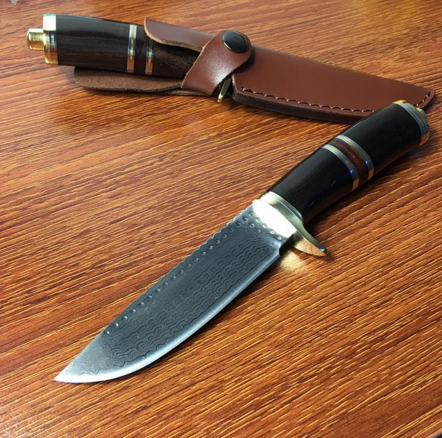 | [해외] 다마스커스 스틸 생존 사냥 칼 흑단 + 구리 핸들 수제 다마스커스 단조 fiexd 칼 |