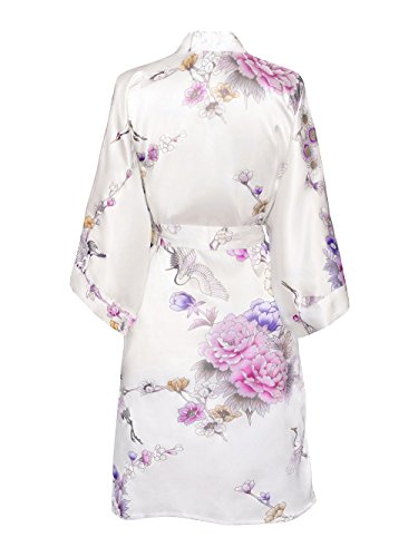 Old Shanghai Women's Kimono Short Robe - Chrysanthemum & Crane - White