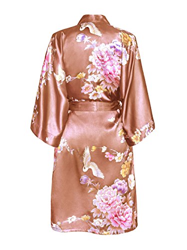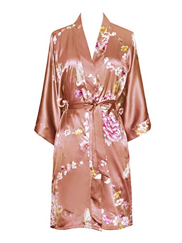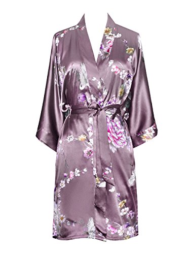 Old Shanghai Women's Kimono Short Robe - Chrysanthemum & Crane (Mauve)