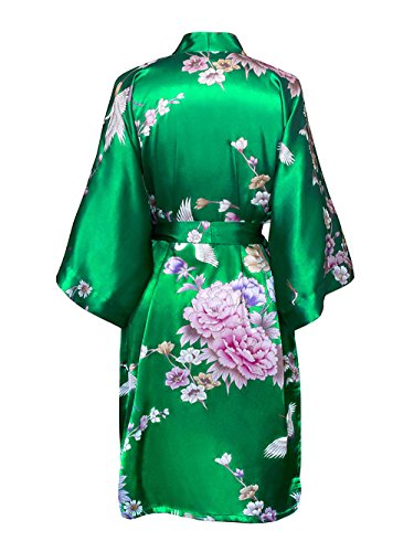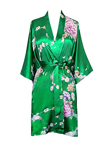 Old Shanghai Women's Kimono Short Robe - Chrysanthemum & Crane - Lush Meadow