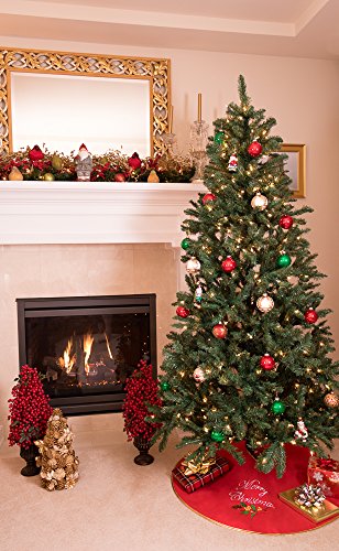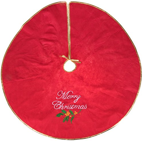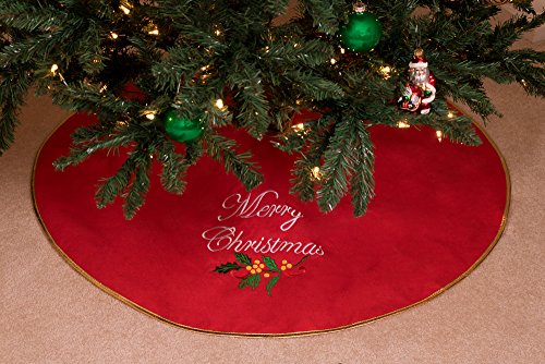 Merry Christmas Embroidered Tree Skirt by Clever Creations | Red, White and Green | Festive Holiday Design | Traditional | Tie Closure | Helps Contain Needle and Sap Mess on Floors | 40" Diameter