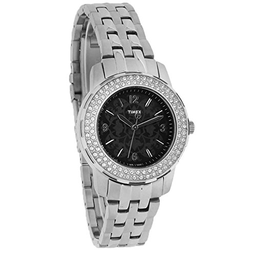 -. Title : Timex Starlight Ladies Crystal Black Floral Dial Quartz Watch T2P397