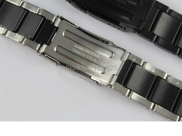 | [해외]19mm t095417a 손목 시계 시계 부품 남성 스트립 고체 블랙 스테인레스 스틸 팔찌 접이식 버클 스트랩 t095 무료 배송 |