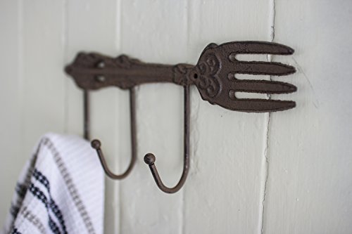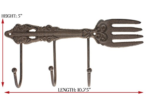 CAST IRON KITCHEN STORAGE RACK FOR TOWELS, APRONS, OVERN MITTS, KEYS AND MORE Add character to your kitchen, dining room, patio, cabin or garden with our metal towel rack. Made from recycled cast iron and decorated with a vintage, antique-like finish, these wall hooks will be a jewel of your home decor and a conversation starter. These old fashioned wall hooks are decorated with vintage ornaments to give your home a warm, sophisticated look. The vintage fork design add a character, while the rustic finish reminds us of an old-country charm. What a great way to organize your kitchen! HIGHT QUALITY PRODUCT FOR YOUR HOME These wall mounted towel hooks are not flimsy and will last in your family for generations. Mounting the towel rack on your wall is super easy with included screws and anchors. The hanger can be use in your kitchen, dining room, on your patio, in a lodge or cabin or in a country setting. GREAT GIFT IDEA FOR ANYONE YOU CARE ABOUT A great gift is useful, has character and can last a lifetime. Our towel holder can be used any day while bringing charm and character to a special home. They are durable, artisan and unique. These towel racks will make a wonderful gift for a birthday, Christmas, wedding, house warming party, Mother's Day or just because you care. All our products sold on Amazon come with Amazon's A-to-Z Guarantee, our satisfaction guarantee and a 30 day return policy, so shop with confidence. Thank you. 0 |