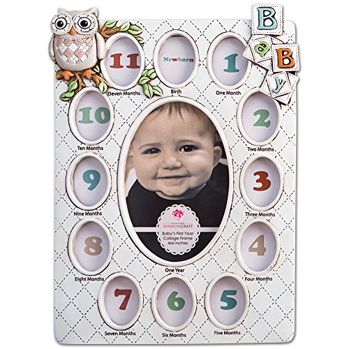 Baby's First Year Collage Picture Frame Holds 13 Photos From Birth - Age 1