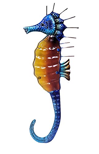 Seahorse Decor Metal and Glass Wall Plaque, 20" (Orange / Blue)