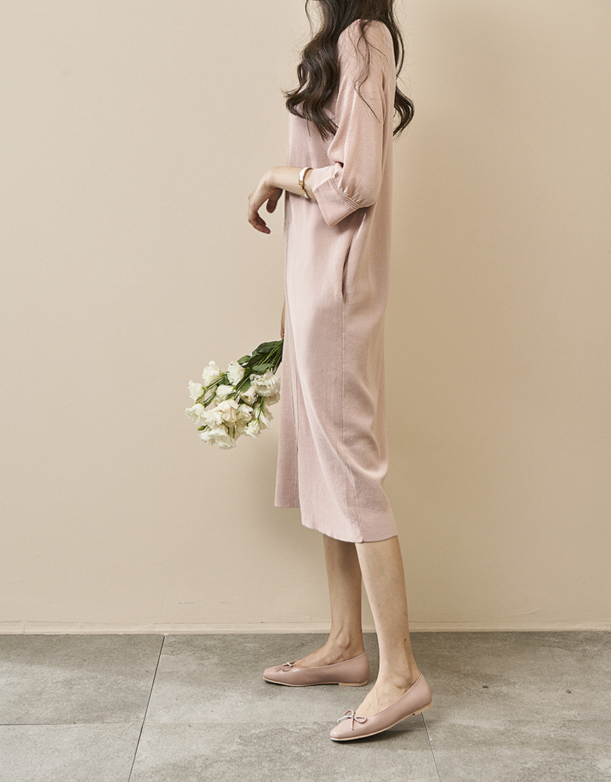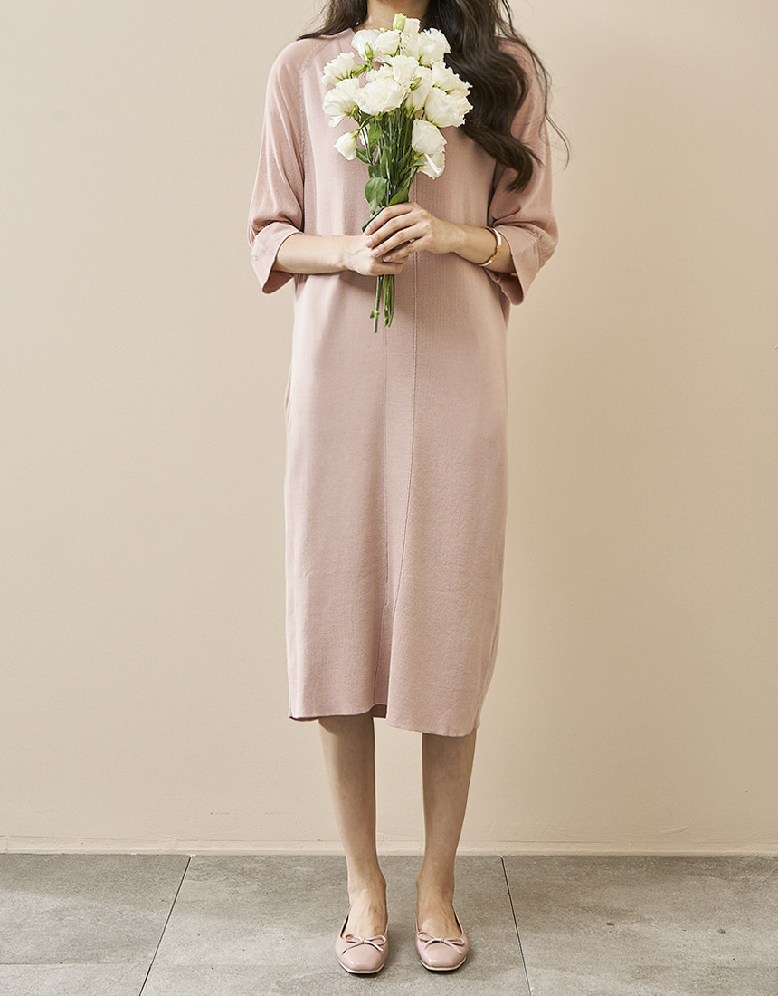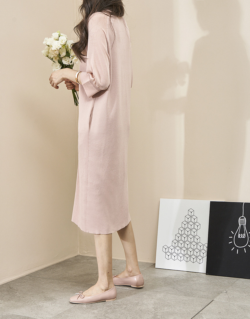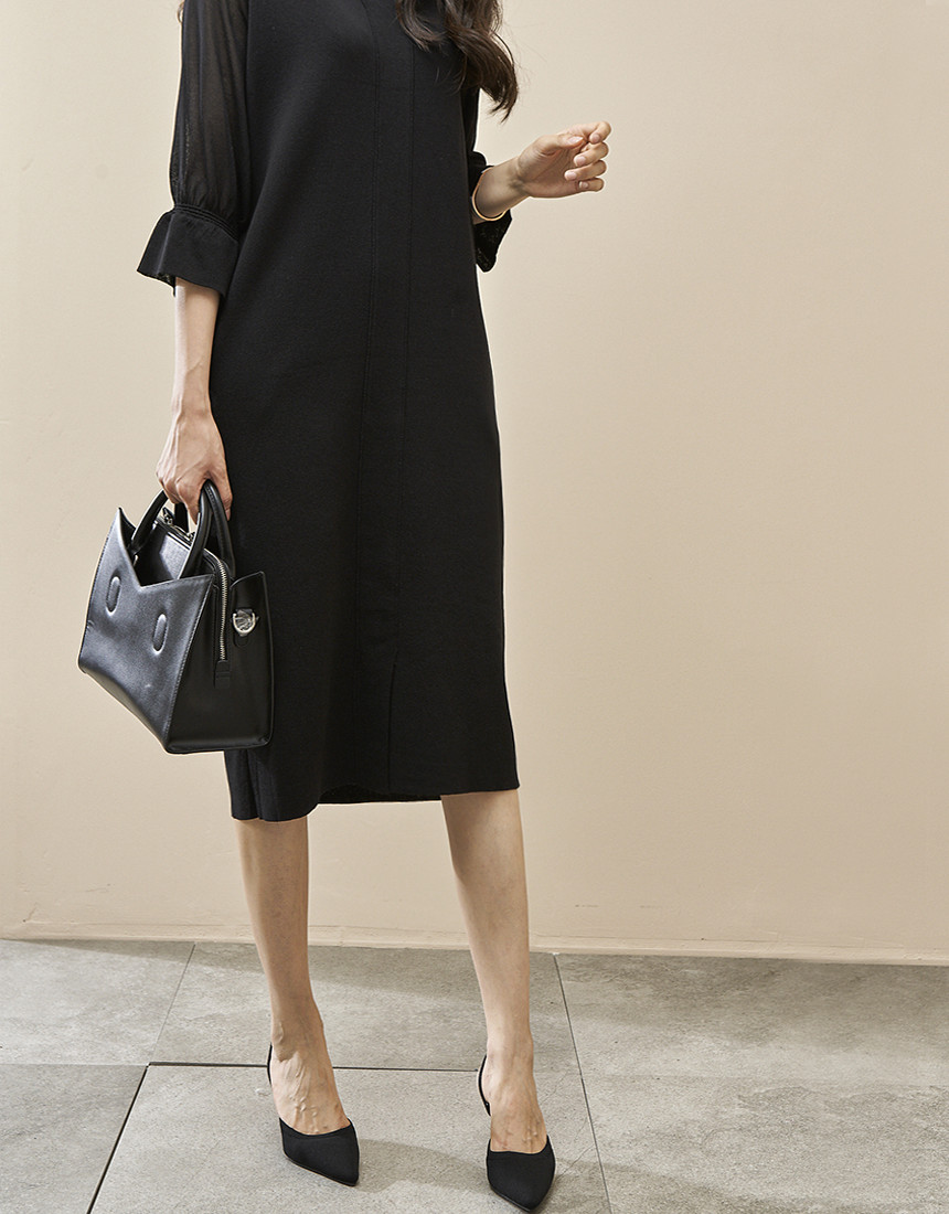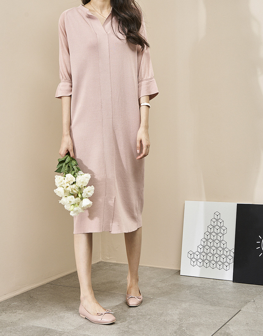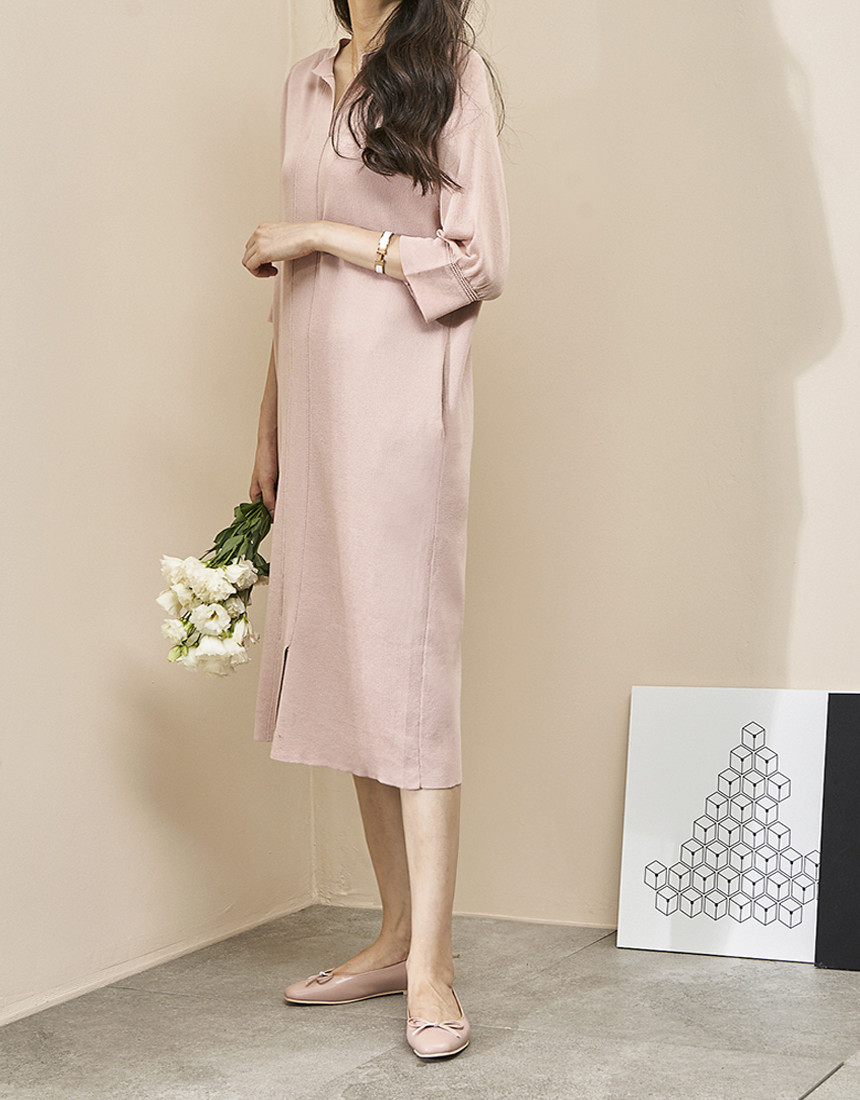 #7부 카라 슬림 니트 롱원피스
