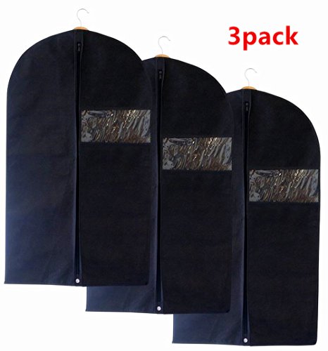 -. Feature : Prevent your clothes from dusting;Scope: shirt / T shirt / suit / sweater / windbreaker / skirt;Storage scene: bathroom admission, bedroom admission. / Protects your clothing with secure covers to keep your fine clothes crisp, fresh, wrinkle free, and safe from moths, dust, elements, fading, smelly odor. Water resistant, ideal for travel, long term storage, ladies couture bridal gown & fur coats. / Thick and strong, good quality; can be repeatedly washed and used, not afraid of dirty, dust effect super good;through environmental protection quality inspection, no smell, zero formaldehyde; moisture, dust, pest control,Anti-bacteria, thickening of the fabric, transparent window visible, can be washed, machine wash, foldable. / Home and travel- Light & portable for hanging in the closet or pack in luggage, folding carry-on, rolling suit case; No more hassles getting through airport security while travelling; Simple, hangs easily, holes for hangers & handles in your car; Lasts longer than dry cleaning bags. / Trumpet: 35.5x23 ", Medium: 42.5x23 ", Large: 50.x23 ".Perfect Garment Bags for Suits - Dress Bag Set for Easy Storage or Travel.