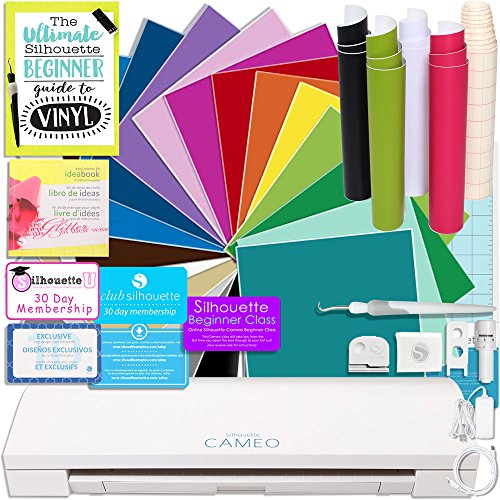 Silhouette CAMEO 3 Bluetooth Delux Vinyl Starter Bundle with 12x12 Vinyl Sheets, Transfer Paper, Guide, Class, Tools, and More