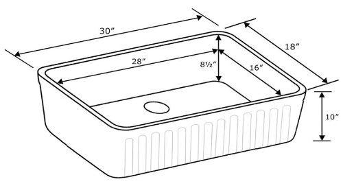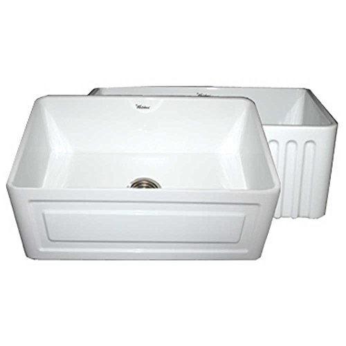 Whitehaus WHFLRPL3018 30-Inch Reversible Series Fireclay Sink with Raised Panel Front Apron on One Side and Fluted Front Apron on Other Side, White