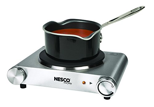 Prepare meals anywhere and in any number of ways with Nesco's single Electric Burner. Its cast iron plate and stainless steel housing make it effective and easy to use. It includes adjustable temperature control, built-in protection from overheating, and skid-proof rubber feet.