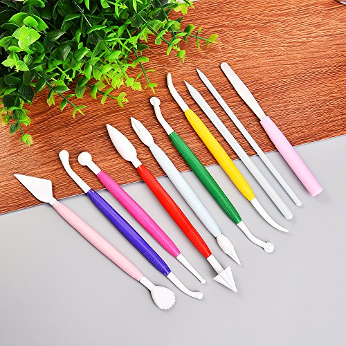 Outus 10 Pieces Plastic Clay Tools Ceramic Pottery Tool Kit for Shaping and Sculpting (Assorted Colors)