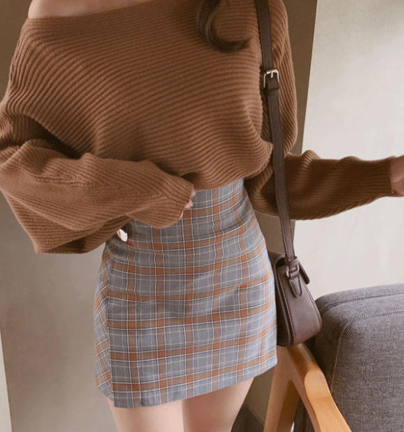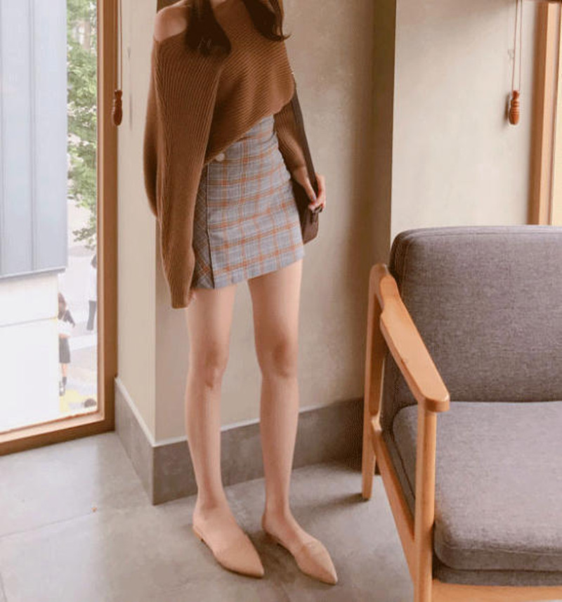 ♢ポイント♢ トレンドのチェック柄スカートです。 ハイウエストデザインで、スタイルアップにも◎