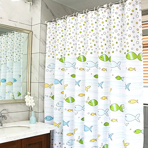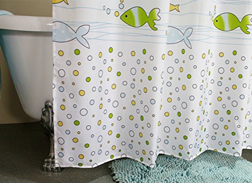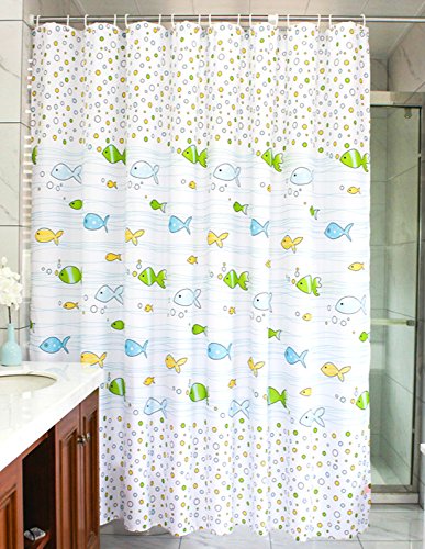 MangGou Fabric Shower Curtain,Funny Kids Shower Curtain Liner,Waterproof Polyester Bathroom Curtain With 12 Hooks,for Boys & Girls with Cartoon Fish,Mildew resistant,Machine Washable,72 x 72 inch