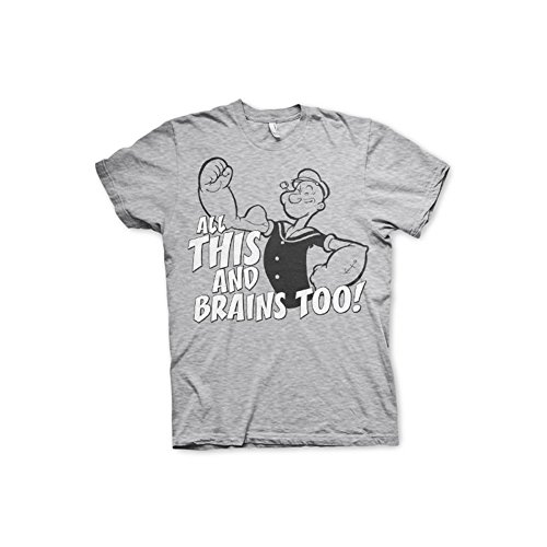 Small 50 cm 69 cm Medium 53 cm 72 cm Large 56 cm 74 cm X-Large 58 cm 76 cm XX-Large 62 cm 78 cm The measurements are before washing. Apparel will shrink about 1-2% at the first wash. All measurement are accurate to within 2-5 cm. / Shipping from LONDON / UK. Standart shipping takes 10 days to US. / Machine washable, Wash Reverse, No Tumble Dry, Iron Reverse -. Label : Popeye -. Manufacturer : Popeye -. MPN : KF-1-POP013-H53-3 -. NumberOfItems : 1 -. PackageQuantity : 1 -. PartNumber : KF-1-POP013-H53-3 -. ProductGroup : Apparel -. ProductTypeName : SHIRT -. Publisher : Popeye -. Size : One Size -. Studio : Popeye -. Title : Popeye T Shirt All This And Brains Too Official Mens Grey