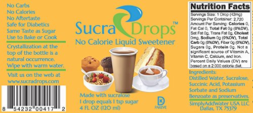 SucraDrops 4 oz Bottle of Premium Liquid Sucralose Sweetener, 2,720 Servings, Free Travel Size Bottle