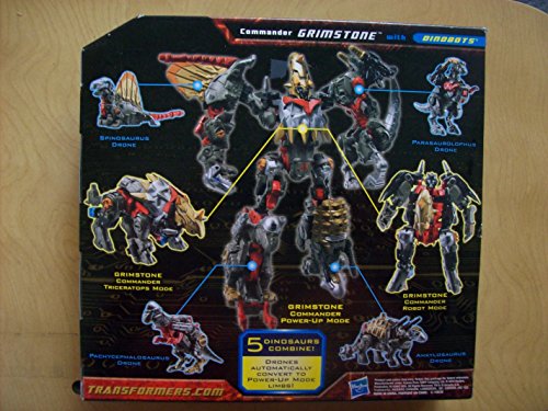 Includes: Autobot GRIMSTONE with 4 Dinobots (Spinosaurus Drone, Pachycephalosaurus Drone, Parasaurolophus Drone and Ankylosaurus Drone)