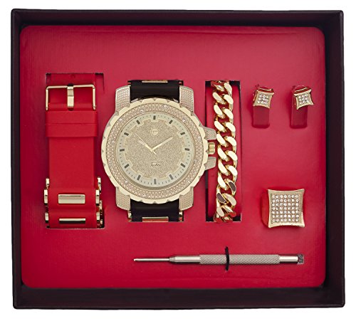This Techno Pave Mega Gift set is a perfect gift for any occasion. With an interchangeable band to give you options to match your outfit, and a gold plated bracelet with micro pave earrings and a micro pave ring to match, you can't ask for a better Gift set. These are limited edition Techno Pave Gift sets that you will not be able to find anywhere else.Feature