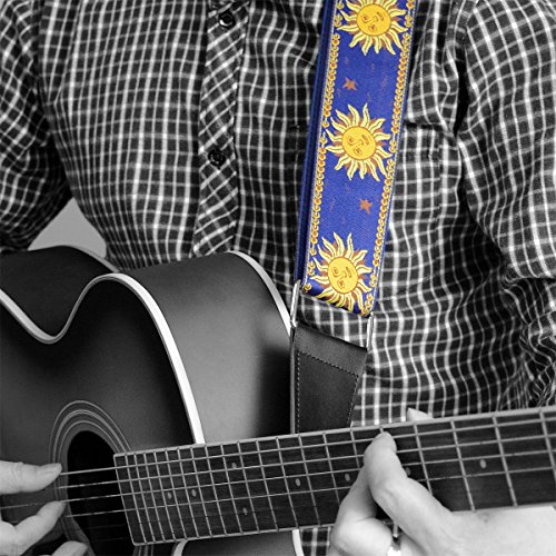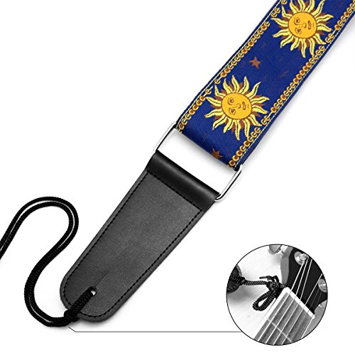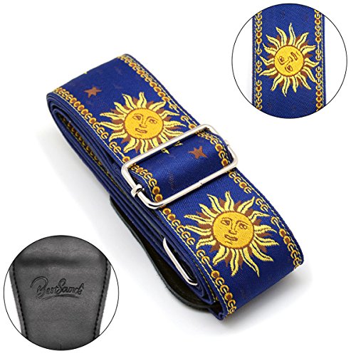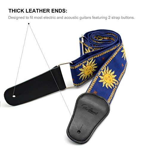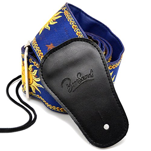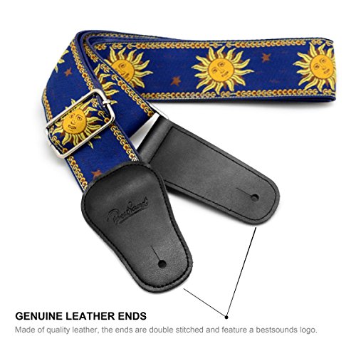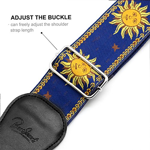 BestSounds Leather Adjustable Guitar Strap - Sun Jacquard Weave Strap For Bass Electric & Acoustic Guitars (Blue)