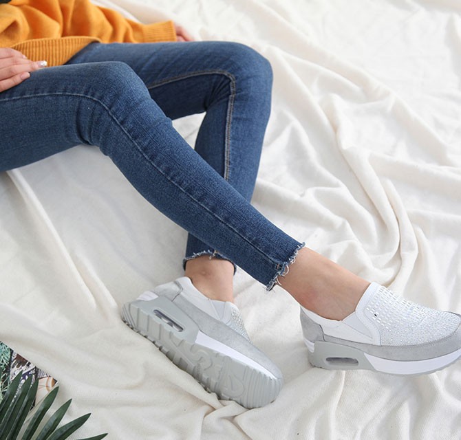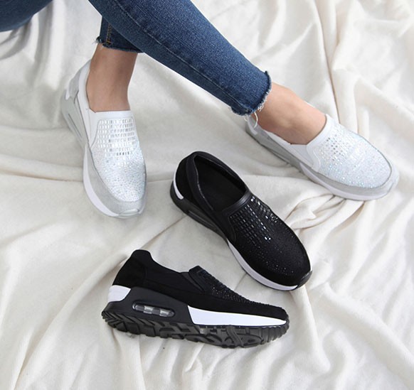 商品名:スリッポン レディース スニーカー ビジュー キラキラ 2017 秋 冬 ファッション 靴 婦人靴