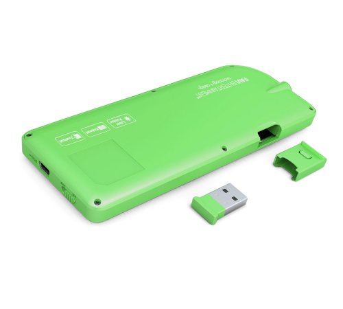 The FAVI FE01 is a fully functional wireless USB keyboard and touchpad mouse combination that easily fits inside your pocket. Available in black, silver, and green, the FE01 is a stylish and versatile accessory. Complete with a built-in laser pointer, and compatible with any device that supports a standard USB keyboard, the FE01 is a great portable solution for presentations, gaming, HTPC control, mobile device control, lectures, and classroom teaching. The touch pad can be flipped for use when the keyboard is held either vertically like a remote control, or horizontally. 2.4g wireless technology allows for remarkable performance from a device smaller and slimmer than many TV remote controls.