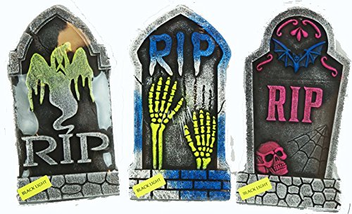 -. Title : Set of 3 16" Asst. Halloween Foam Tombstones, Black Light Props, Haunted House or Yard Decorations and Lawn Accessories