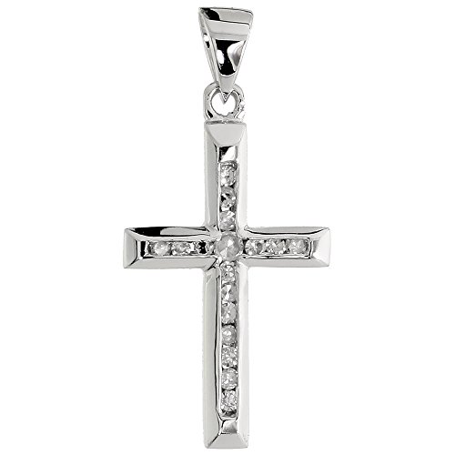 -. Title : 14k White Gold 3/4" (19mm) tall Diamond Latin Cross Pendant, w/ 0.12 Carat Brilliant Cut Diamonds