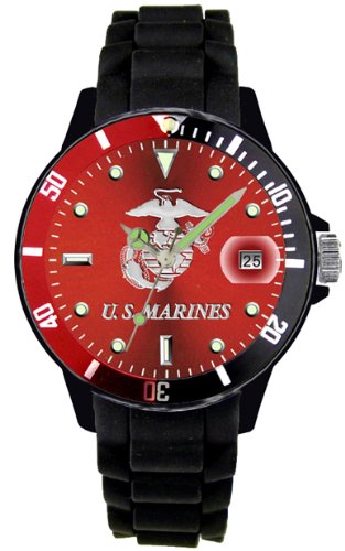 -. Title : Marine Corps Watch with Etched Dial and Silicone Strap