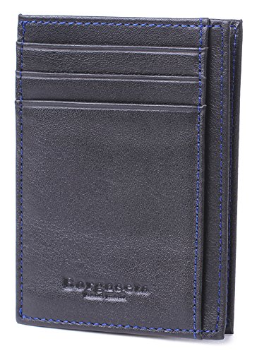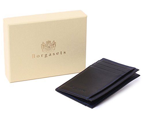 -. Binding : Apparel -. Brand : Borgasets -. Department : mens -. Feature : SAFETY. PRIVACY. SECURITY. - Our Credit Card Pocket are equipped with advanced RFID SECURE Technology, a unique composite, which specifies in blocking 13.56 MHz or higher RFID signals and protects the valuable information stored on RFID chips from unauthorized scans / 3 card slots, 1 ID window & a middle compartment for storing folded cash / * 100% Genuine Leather / Measures 4.02" x 3.04" / Perfect for those everyday essentials,Utility pocket,Throw your ID and your credit cards into this slim case. -. PackageQuantity : 1 -. ProductGroup : Apparel -. ProductTypeName : ACCESSORY -. Size : Small -. Title : Borgasets RFID SAFE Men's Genuine Leather Front Getaway Pocket Wallet Small Credit Card Holder Minimalist Money Clip