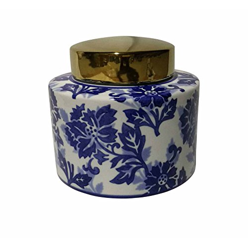 Benzara Sophisticatedly Charmed Ceramic Covered Jar, Blue/White